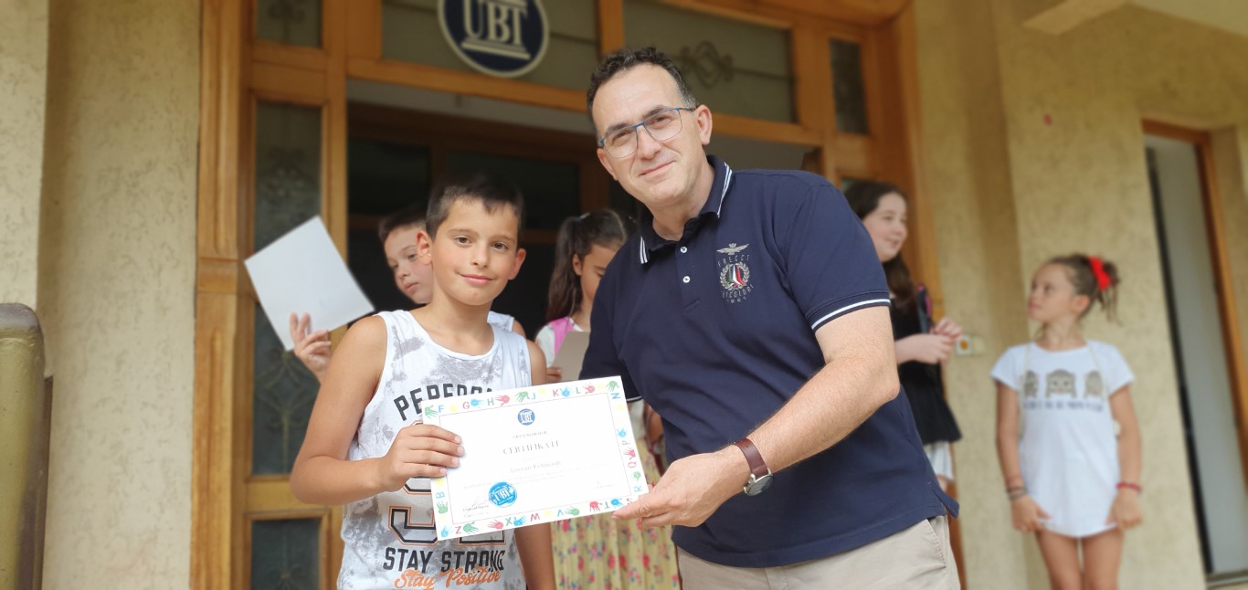 Rektori i UBT-së, prof.dr Edmond Hajrizi, personalisht u ka dorëzuar certifikatat grupit të parë të fëmijëve, të cilët me sukses kanë arritur që të kualifikohen në dy fusha, pikturë dhe vizatim, si dhe në fushën e mendimit kritik.