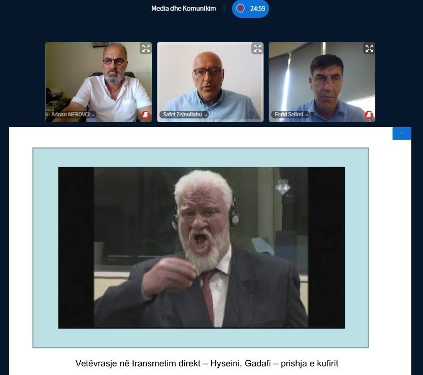 Gjatë këtij cikli ligjëratash, tutje prezantoi ligjëruesi në UBT, PhD. Cand, Safet Zejnullahu, i cili trajtoi temën: “Mediat si aleat i pandemisë”. Zejnullahu për pjesëmarrësit shtjelloi epidemitë në kohë të mëhershme kur nuk kishte internet, për raportimet për temat e ndjeshme, për raportimet në kohën e pandemisë, rrëfimet e rrezikshme dhe ndikimin e tyre tek publiku, për lajmet e rreme dhe përfitimet, për dezinformimin nga mediat kredibile, për rritjen dhe uljen e panikut me dezinformata, të cilat janë pasuruar me shembuj konkret.