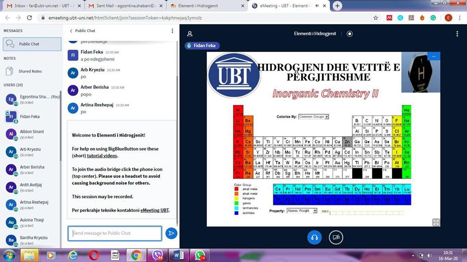 Përveç komunikimit me video dhe audio, studentët po përdorin edhe opsionet e tabelave virtuale për të praktikuar leksionet në kohë reale.