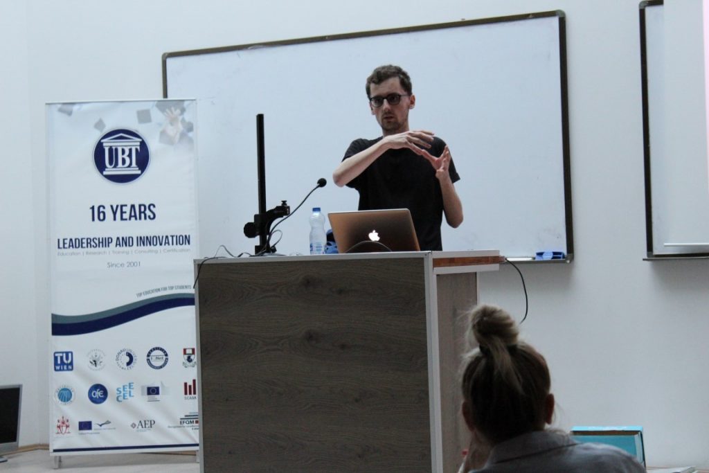 20/07/2018Në ANV-në e Dizajnit të Integruar ka ligjëruar sot Tefik Rada, kritik i artit, i cili ka prezantuar temën “Metropoli, montazhi dhe filmi”. Ai ndau me studentët përvoja të tij këtë fushë, si dhe dha vlerësime rreth artit në Kosovë.