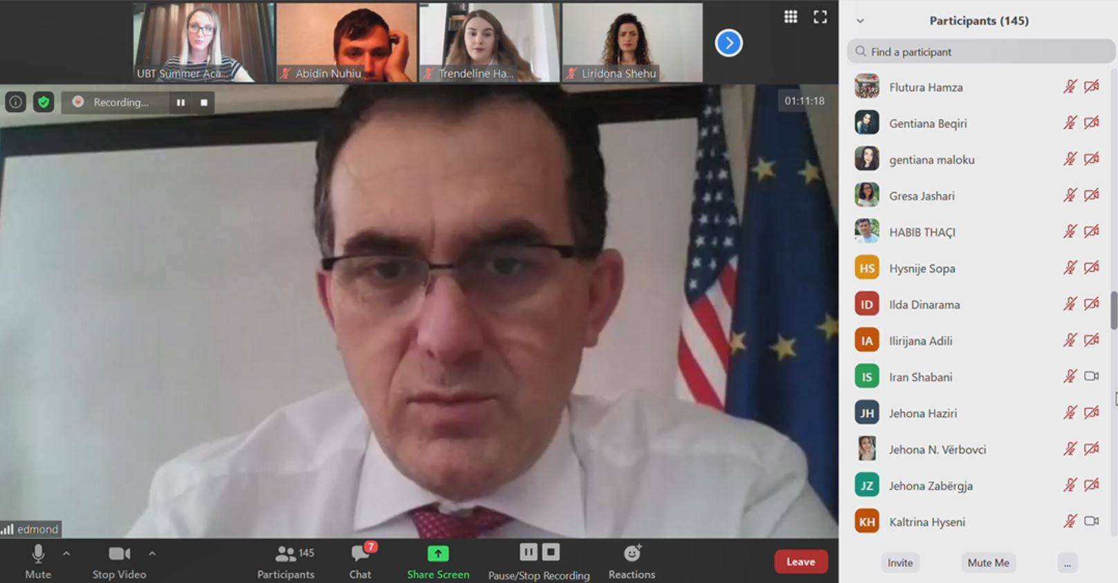 Në këtë diskutim mori pjesë rektori i Kolegjit UBT, Edmond Hajrizi, ku ndër të tjera, theksoj se UBT ka krijuar kushtet e nevojshme për mësimin online dhe virtual, duke lansuar platformën për Realitet Virtual, në bashkëpunim me gjigantin e teknologjisë, EON Reality nga SHBA. Aty UBT ka krijuar mbi 20.000 mësime dhe shumë programe studimi në platformën e Realitetit Virtual.