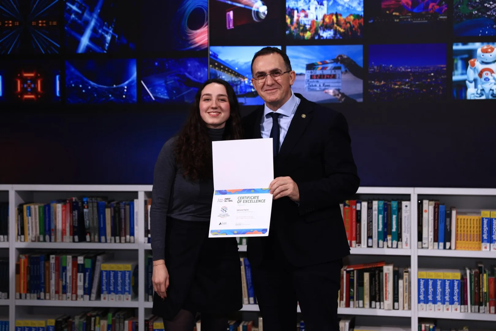 23/12/2025Në një ceremoni të veçantë të zhvilluar në UBT, në prani të drejtuesve të institucionit, mentorëve, prindërve të anëtarëve të ekipit, si dhe përfaqësuesve të komunitetit akademik, u ndanë certifikatat për ekipin kosovar që mori pjesë në garën ndërkombëtare të robotikës FIRST Global Challenge në Panama.