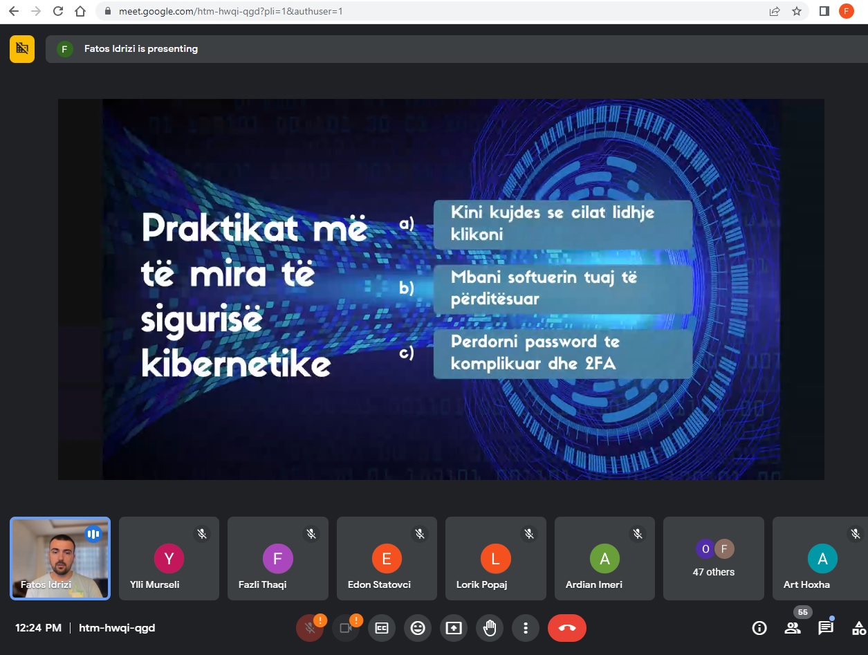 Në këtë ligjëratë u diskutua rëndësia e sigurisë kibernetike dhe mënyrat se si institucionet qofshin ato publike apo private, duhet të veprojnë në raste kur cenohet siguria e tyre nga sulme të ndryshme kibernetike të cilat kohët e fundit janë shtuar në masë të madhe.