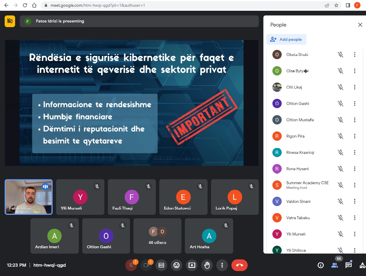 Në mbyllje të kësaj akademia, profesori Kujtim Gashi, së bashku me ekspertin Fatos Idrizi, mbajtën një ligjëratë shumë produktive për studentët me temën “Aspekte të Sigurisë Kibernetike në menaxhimin e ueb-faqeve të institucioneve publike dhe atyre private”.