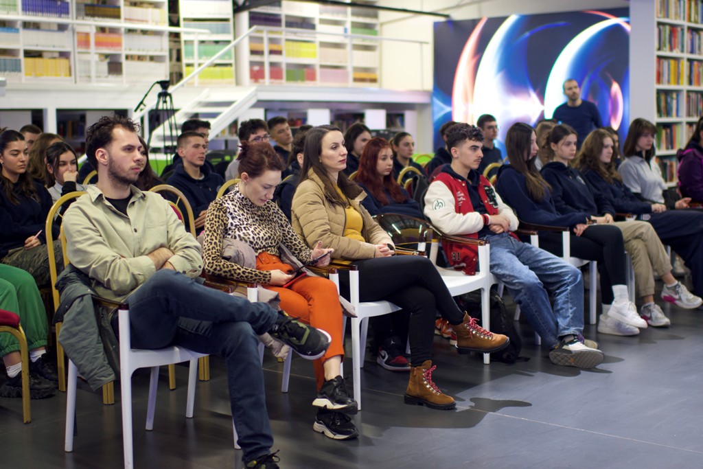 Robin Mudry nga bordi ekzekutiv i JEF Europe zhvilloi një diskutim të hapur me studentët dhe gjimnazistët e UBT-së