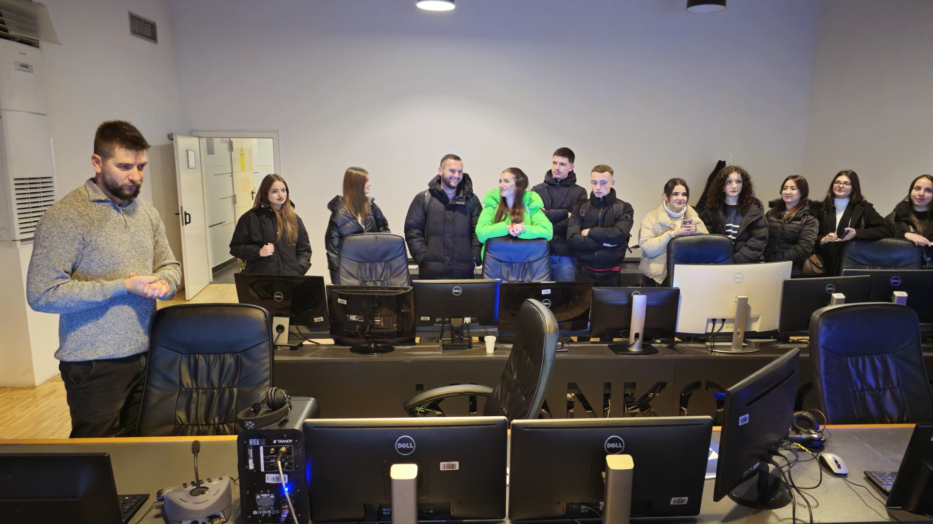 Në kuadër të lëndës “Zhanret e Gazetarisë”, studentët të shoqëruar nga profesori, njëherit gazetari Shkodran Gajraku, u njoftuan me mjedisin profesional dhe dinamik të Klan Kosovës, një medium që është një nga liderët e informacionit dhe argëtimit në vend.