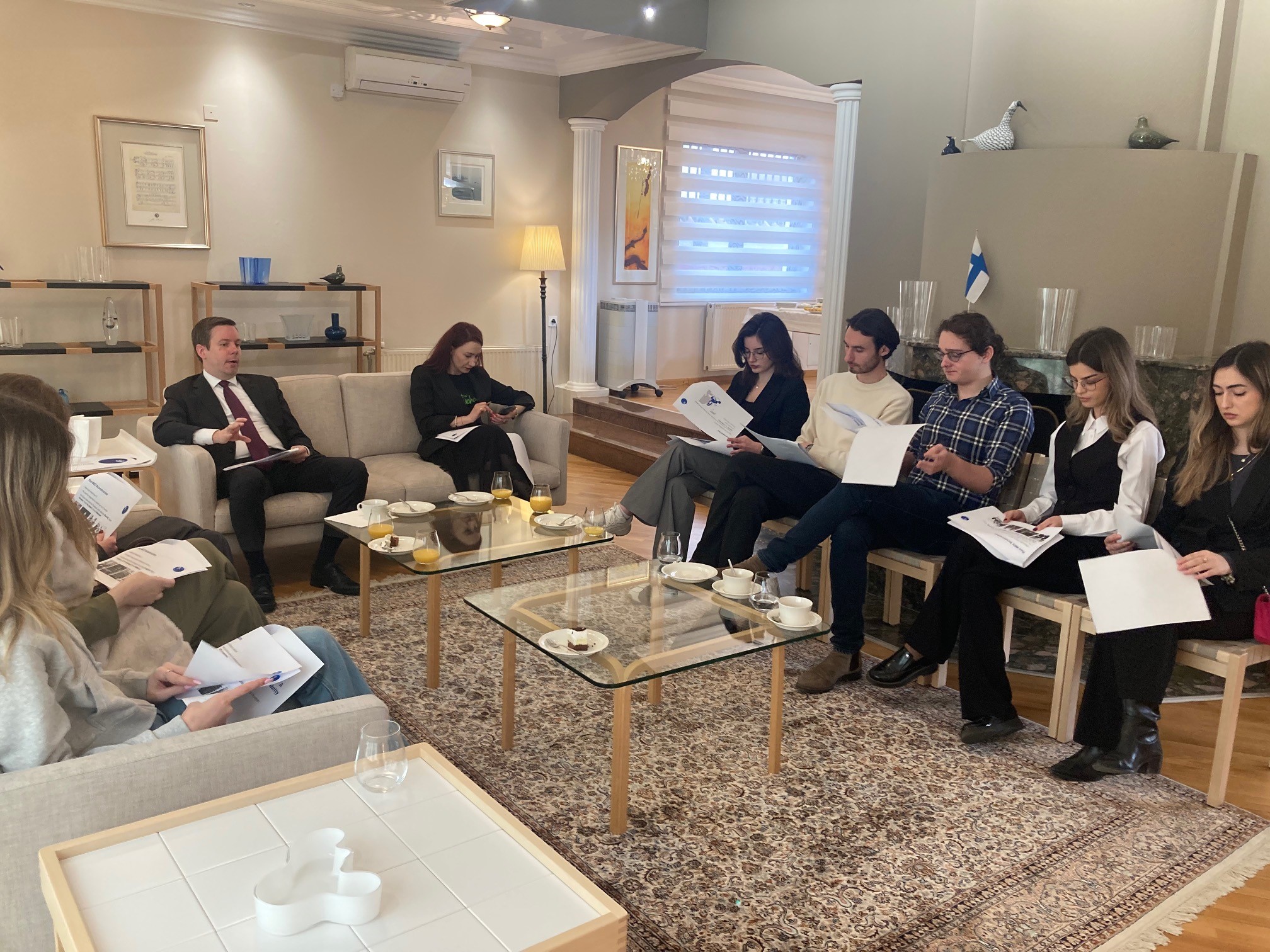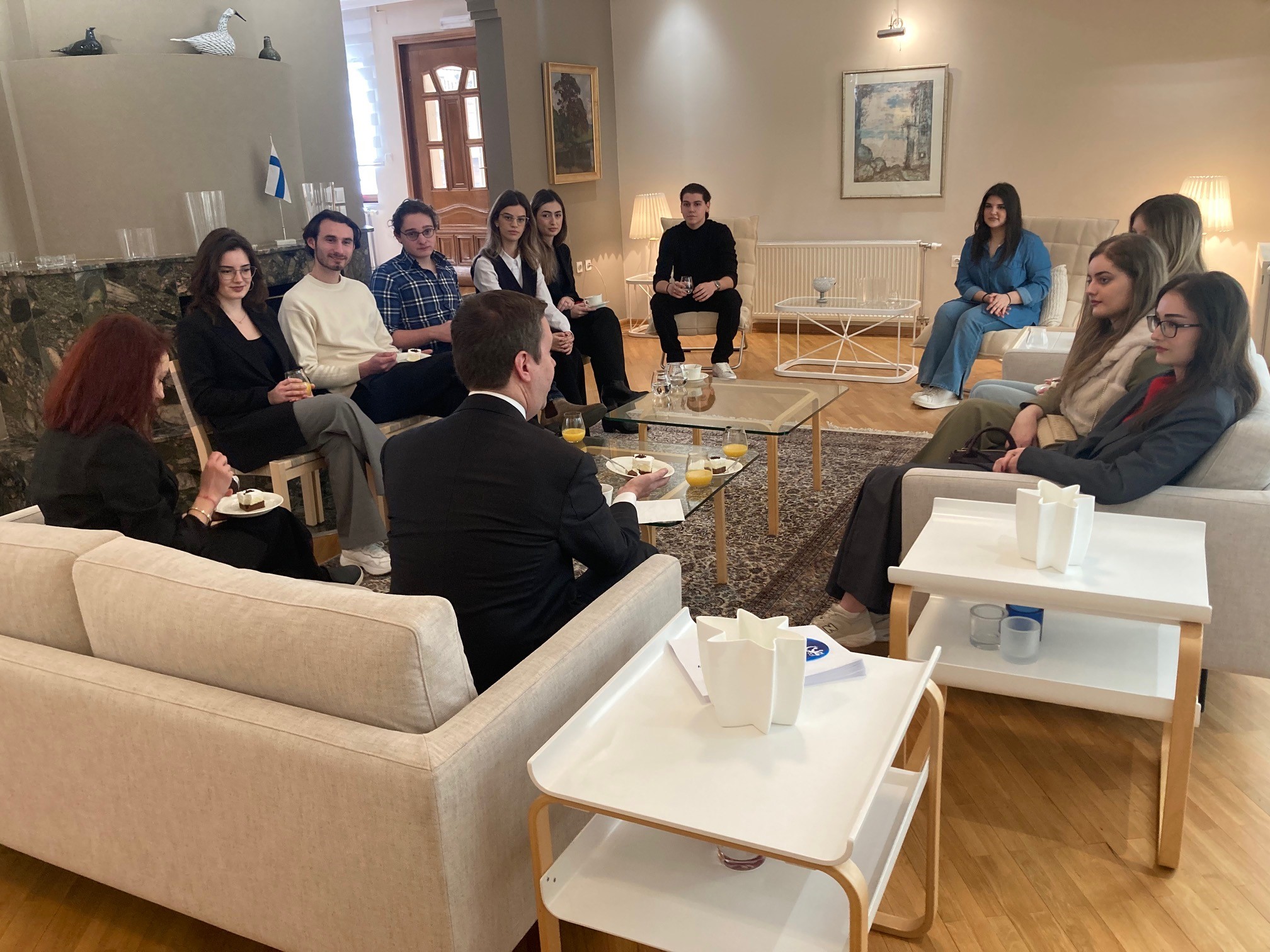 07/03/2024Studentët nga Fakultetet: Shkenca Politike, Studime të Sigurisë, Juridiku dhe Psikologjia nw UBT, të shoqëruar nga profesoresha Hajdi Xhixha, janë mirëpritur në Ambasadën e Finlandës në Kosovë, në takimin e parë të projektit “Meet with Diplomats”.