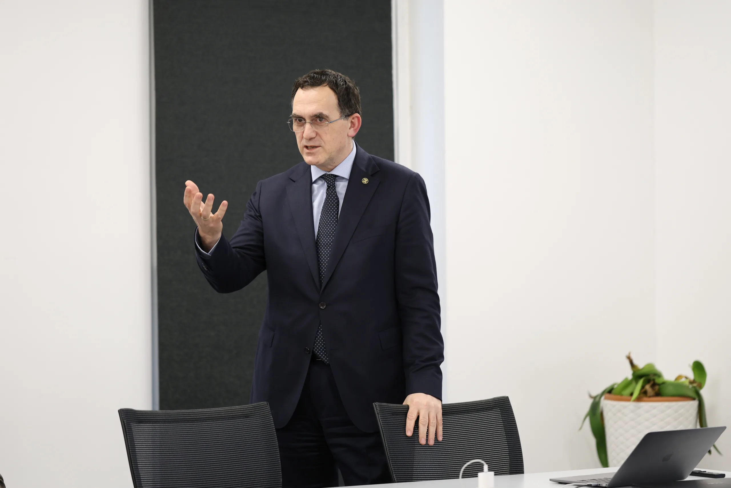 Delegacioni u prit nga Rektori i UBT-së, Edmond Hajrizi, i cili prezantoi nga afër ekosistemin modern të Qytetit të Mençur, projektet inovative si dhe rolin e tij në zhvillimin e ekosistemit teknologjik në vend.