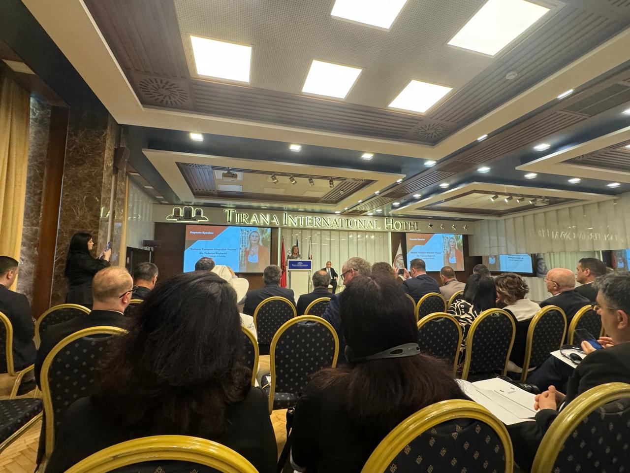 Fjalimin kryesor të konferencës me temë “Procesi i Integrimit Evropian të Ballkanit” e mbajti Federica Mogherini, Rektorja e Kolegjit të Evropës dhe ish-Përfaqësuese e Lartë e BE-së për Punët e Jashtme dhe Politikën e Sigurisë.