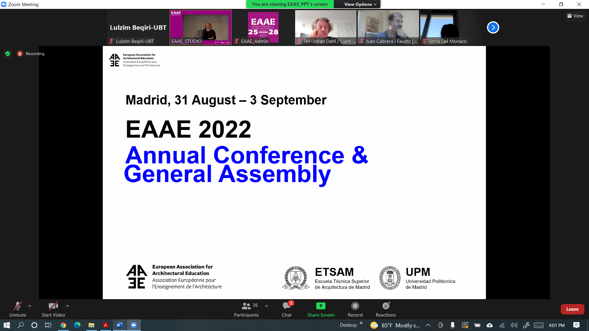 Në këtë konferencë, pjesëmarrës ishin rektorë të universiteteve dhe dekan të fakulteteve të arkitekturës nga tërë Evropa dhe më gjerë, që janë anëtarë të përhershëm dhe të asocuar të Asociacionit Evropian për Edukim Arkitektural (EAAE).